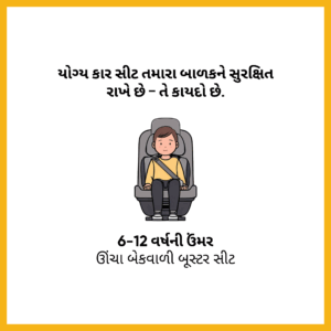 - 135સે.મી. થી ઓછી ઊંચાઈ અથવા 12 વર્ષથી ઓછી ઉંમર: બાળકે યોગ્ય કાર સીટનો ઉપયોગ કરવો જોઈએ.